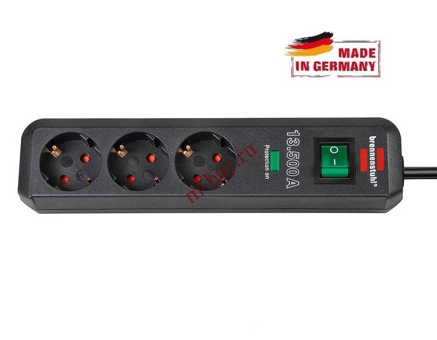 Электротовары > Сетевые фильтры > Сетевой фильтр 1,5 м Brennenstuhl ECO-Line 13.500А, 3 розетки.