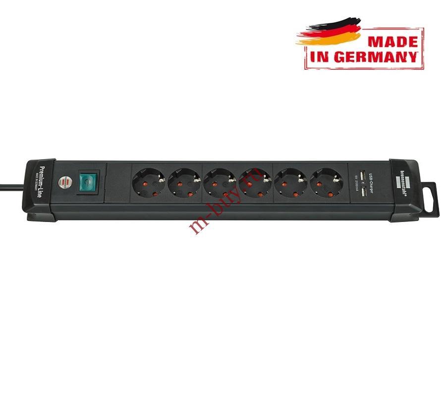 Электротовары > Удлинители > 1951160601 Удлинитель 3 м Brennenstuhl Premium-Line, 2 USB, 6 розеток