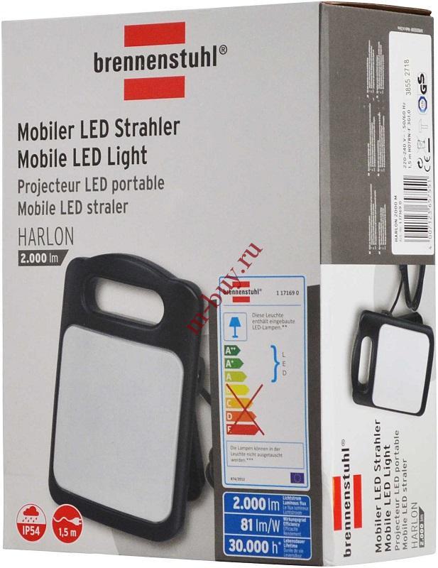 Электротовары > Прожекторы и Светильники > 1171690 Прожектор мобильный Brennenstuhl HARLON LED 2000 M
