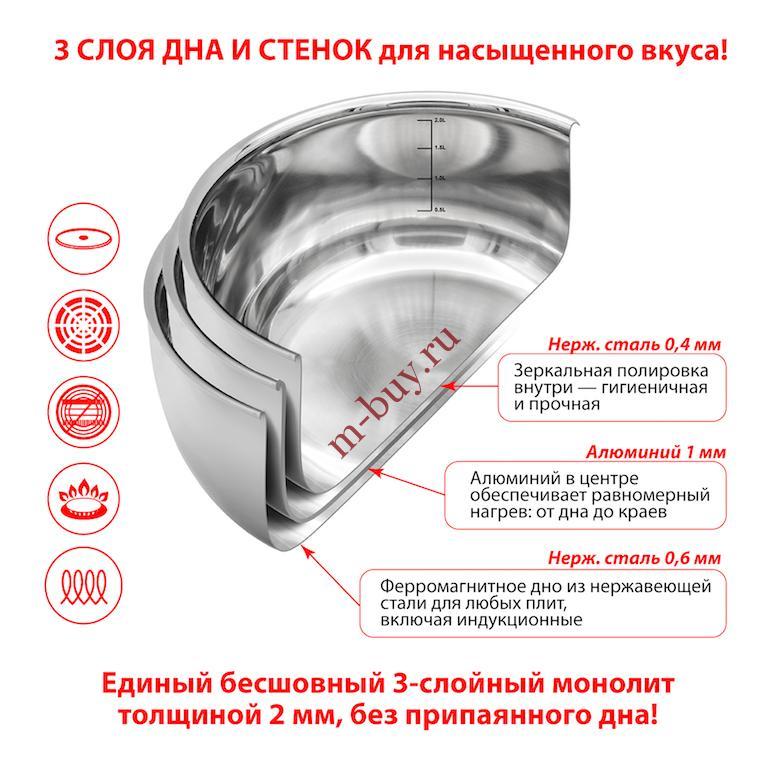Посуда для кухни > Индукционные кастрюли > Кастрюля Hotter нерж. CRYSTAL 2,3л (трёхслойная) SC181, 18см.